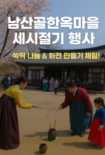 매년 봄마다 열리는 남산골한옥마을 세시절기 행사가 2025년에도 돌아왔습니다. 남산골한옥마을에서 진행되는 이번 세시절기 행사는 가족, 친구, 연인과 함께 전통문화를 체험할 수 있는 특별한 기회입니다. 서울 도심 한복판에서 즐기는 남산골한옥마을 세시절기 행사로 따뜻한 봄날 잊지 못할 추억을 만들어보세요.